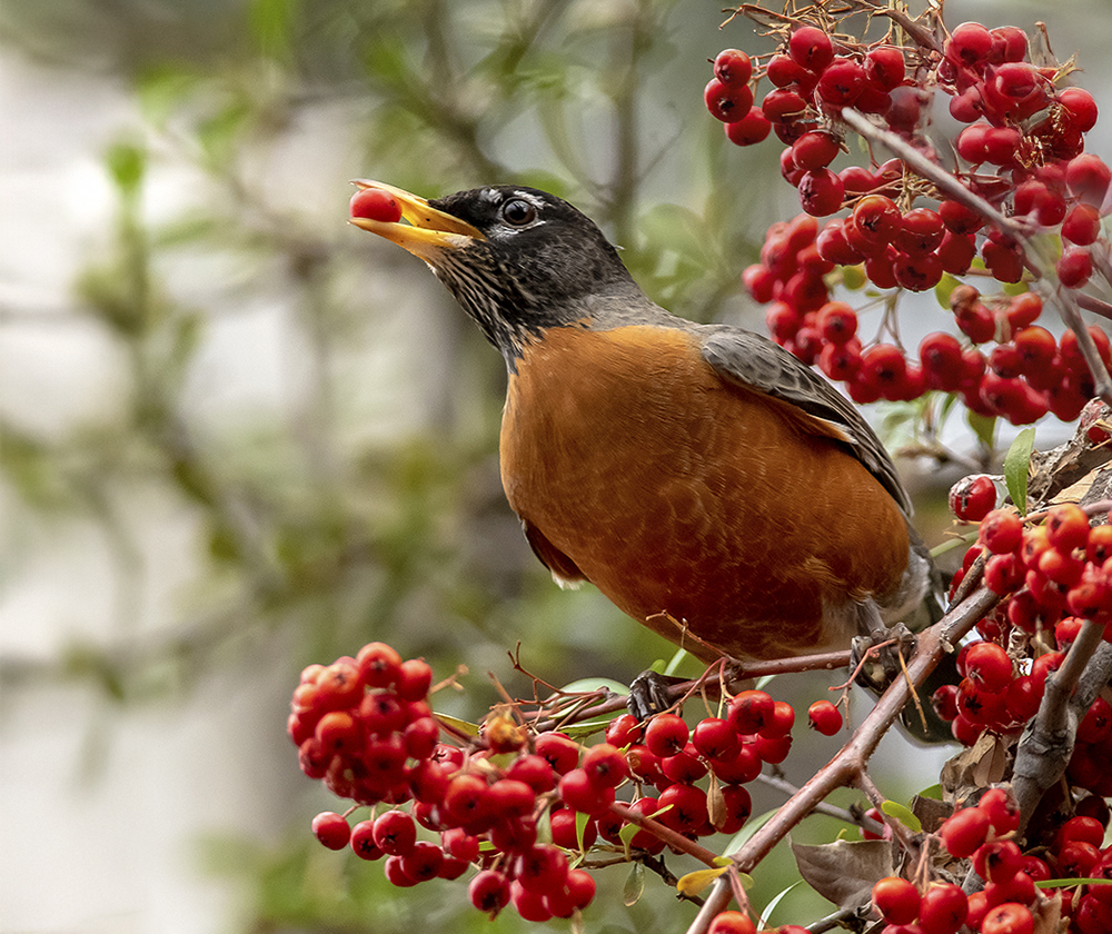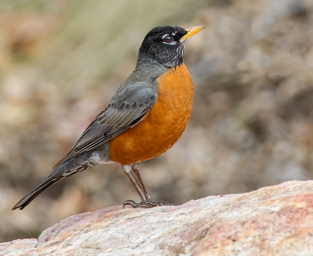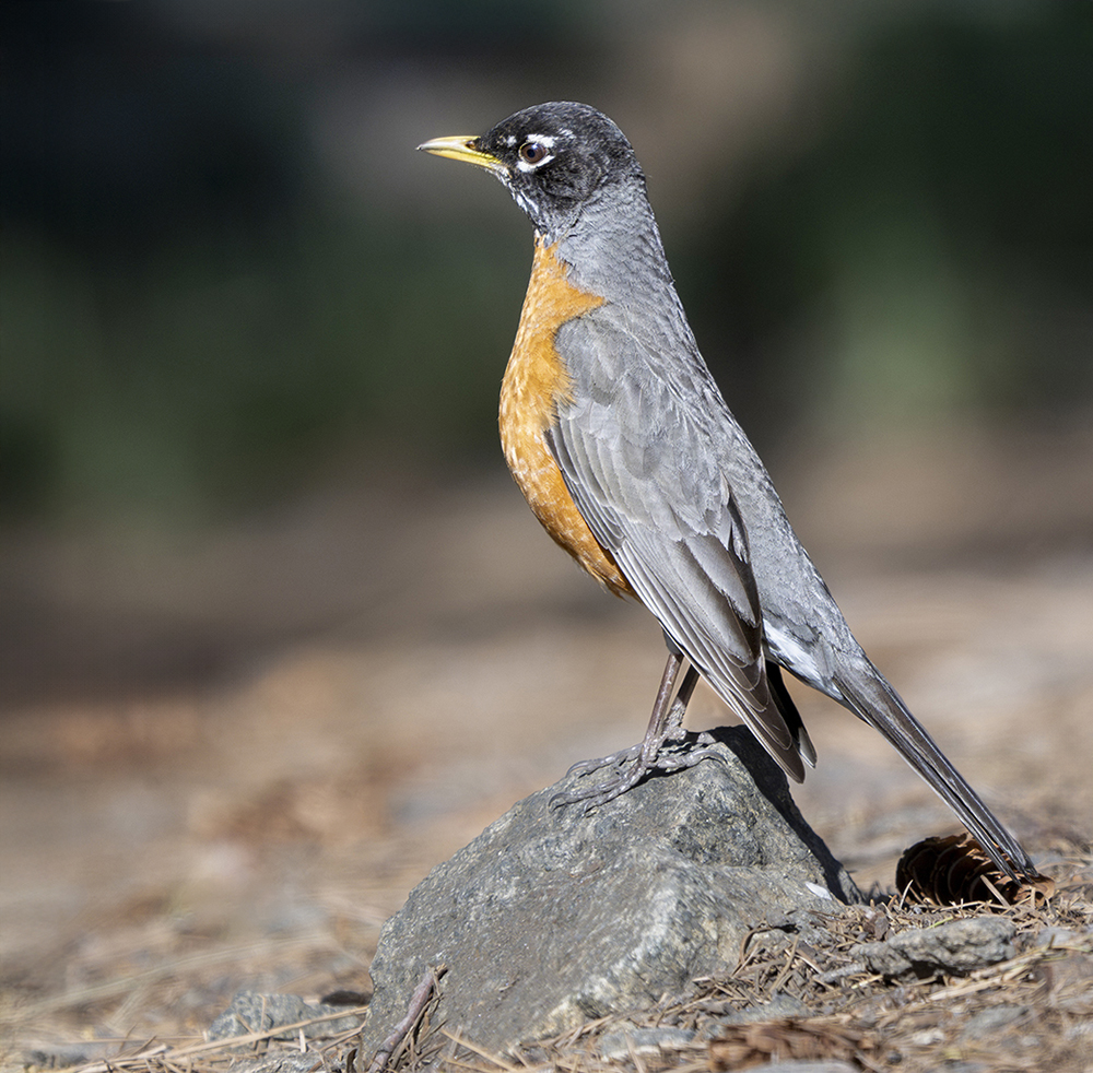 The American Robin is one of the most familiar and widespread songbirds in North America, and it is a common year-round resident across much of Arizona. Recognizable by its orange-red breast, dark gray back, and cheerful caroling song, this thrush thrives in a wide variety of habitats, from mountain forests and riparian woodlands to urban neighborhoods and backyards. In Arizona, robins are especially abundant in the cooler, higher-elevation areas of the Mogollon Rim, White Mountains, and Sky Islands, where they nest during spring and summer. Many also remain through winter, often forming large flocks that forage on berries, fruits, and insects.