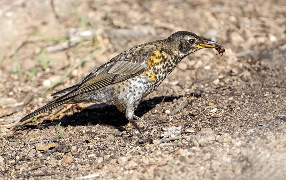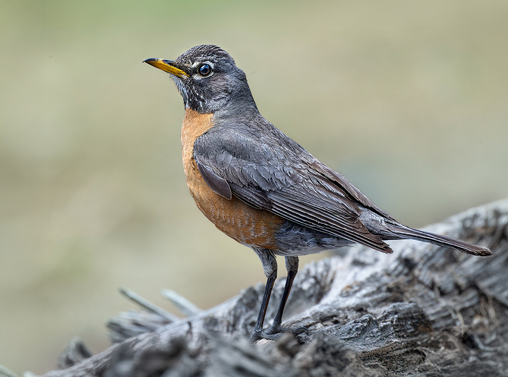 Although they share the name “robin,” the American Robin and the Eurasian Robin (Erithacus rubecula) are not related. The Eurasian Robin is not found in Arizona. The Eurasian Robin is much smaller, just 5–5.5 inches long, belonging to the Old World flycatcher family. Despite their shared name and red breast, the two “robins” evolved separately. The American Robin is closely related to other thrushes, while the Eurasian Robin is closer to nightingales and other flycatchers. Their resemblance is a case of convergent naming rather than close kinship.