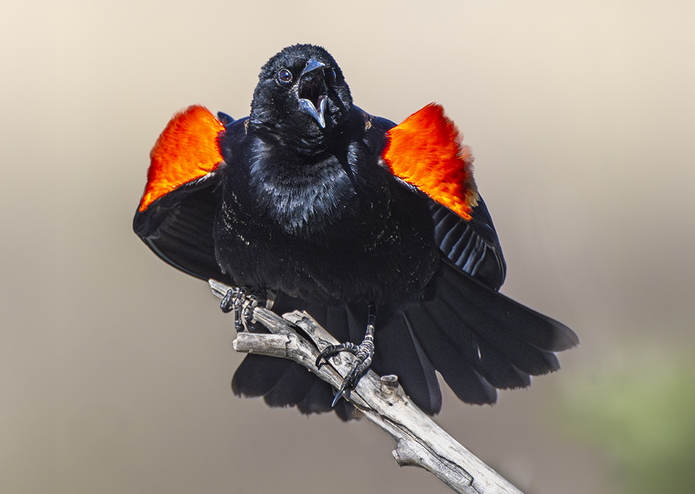 Arizona’s icterids—blackbirds, orioles, and meadowlarks—form a colorful and diverse group across the state’s wetlands, deserts, and grasslands. The Red-winged Blackbird (Agelaius phoeniceus) is abundant in marshes, males showing scarlet and yellow shoulder patches while females are streaked and brown. The striking Yellow-headed Blackbird (Xanthocephalus xanthocephalus) nests in cattail marshes, and the smaller Brewer’s Blackbird (Euphagus cyanocephalus) is common in fields, towns, and feedlots. The Rusty Blackbird (Euphagus carolinus) occurs rarely in winter. Arizona’s cities and farmlands resound with the loud calls of the Great-tailed Grackle (Quiscalus mexicanus), males long-tailed and iridescent while females are smaller and brown. Brood-parasitic Brown-headed Cowbirds (Molothrus ater) are widespread, while the stockier Bronzed Cowbird (Molothrus aeneus), with red eyes and a hunched stance, reaches into southern Arizona from Mexico.