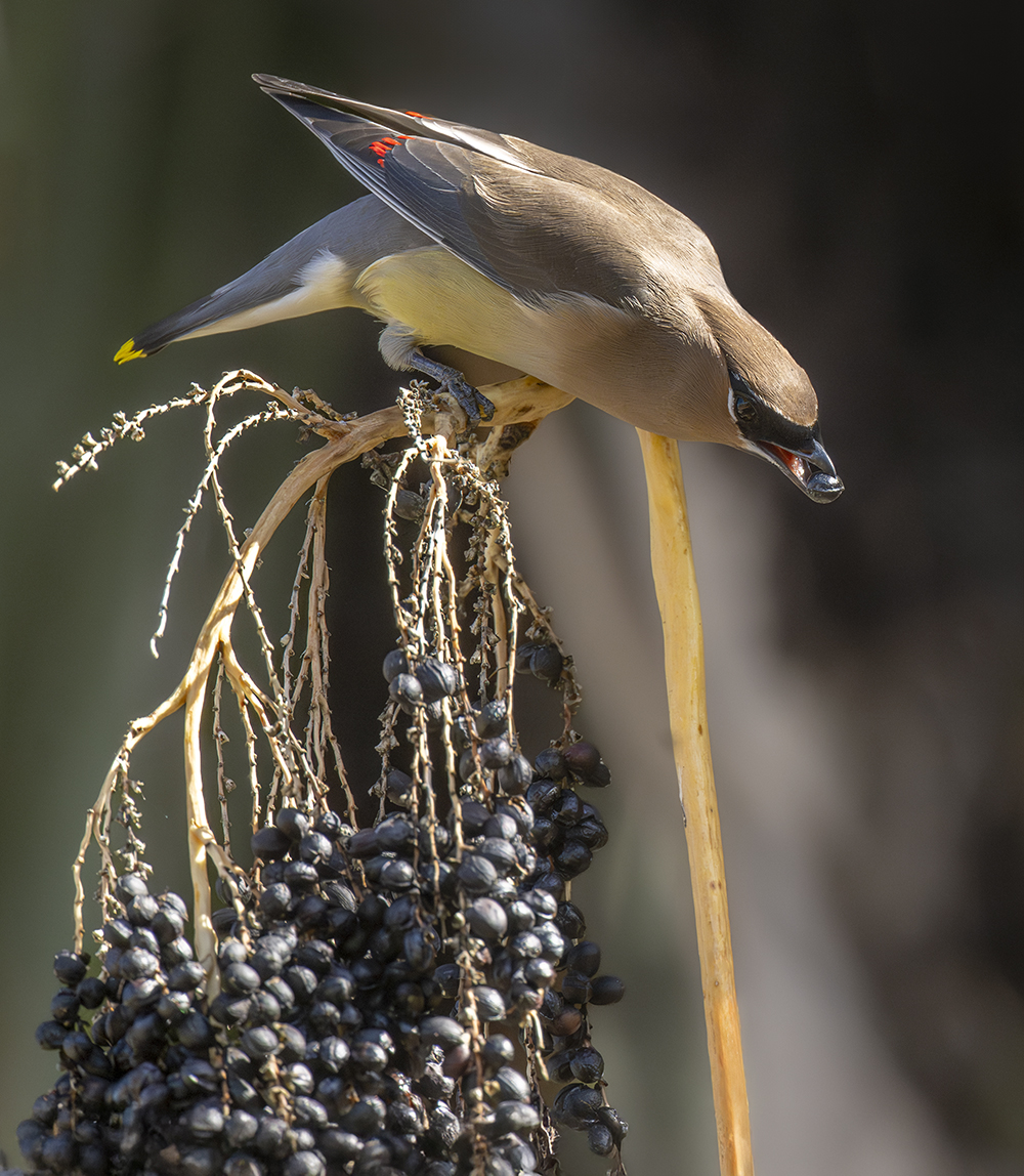 The Cedar Waxwing (Bombycilla cedrorum) is a sleek, crested songbird occasionally found in Arizona, most often in winter and during migration. These birds are recognized by their silky plumage, black mask, and yellow-tipped tail, with adults also showing distinctive red wax-like tips on the wing feathers. In Arizona, they are considered irregular winter visitors, wandering widely in flocks in search of berries, their primary food source. They are most often encountered in riparian corridors, urban areas with ornamental fruiting trees, and foothill woodlands. While not abundant or regular breeders in the state, Cedar Waxwings play an important role as dispersers of seeds, especially for native and ornamental berry-producing plants.