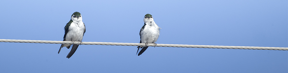 Among the most common in Arizona is the Barn Swallow (Hirundo rustica), easily recognized by its deeply forked tail and rusty underparts. Tree Swallows (Tachycineta bicolor) migrate through the state in large numbers, with their iridescent blue backs and clean white bellies. Violet-green Swallows (Tachycineta thalassina) are widespread in forested regions, especially in the Sky Islands, where they nest in cavities and show greenish backs with violet rumps and white wrapping around the sides of the head.