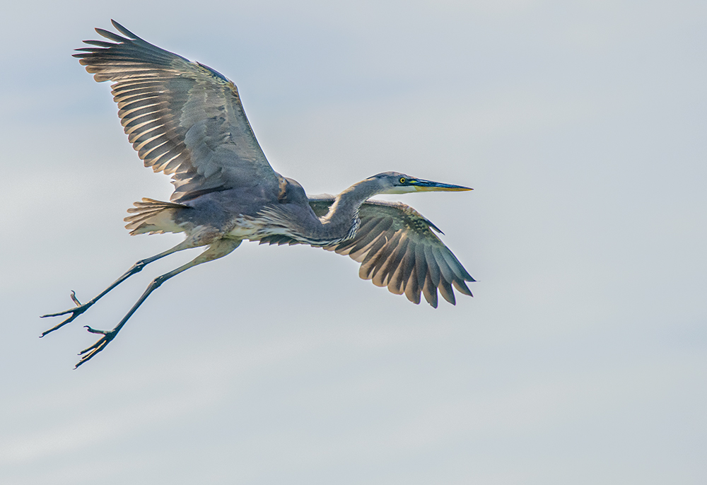 In Arizona, Great Blue Herons breed in scattered colonies—often in tall cottonwoods or cliffs near water—and may form nesting rookeries with other species such as cormorants and egrets. They are especially common in riparian corridors and at locations like the Lower Colorado River, San Pedro River, and major reservoirs. Their slow, deliberate movements, dagger-like bill, and majestic flight with slow wingbeats and a tucked-in neck make them easy to identify.