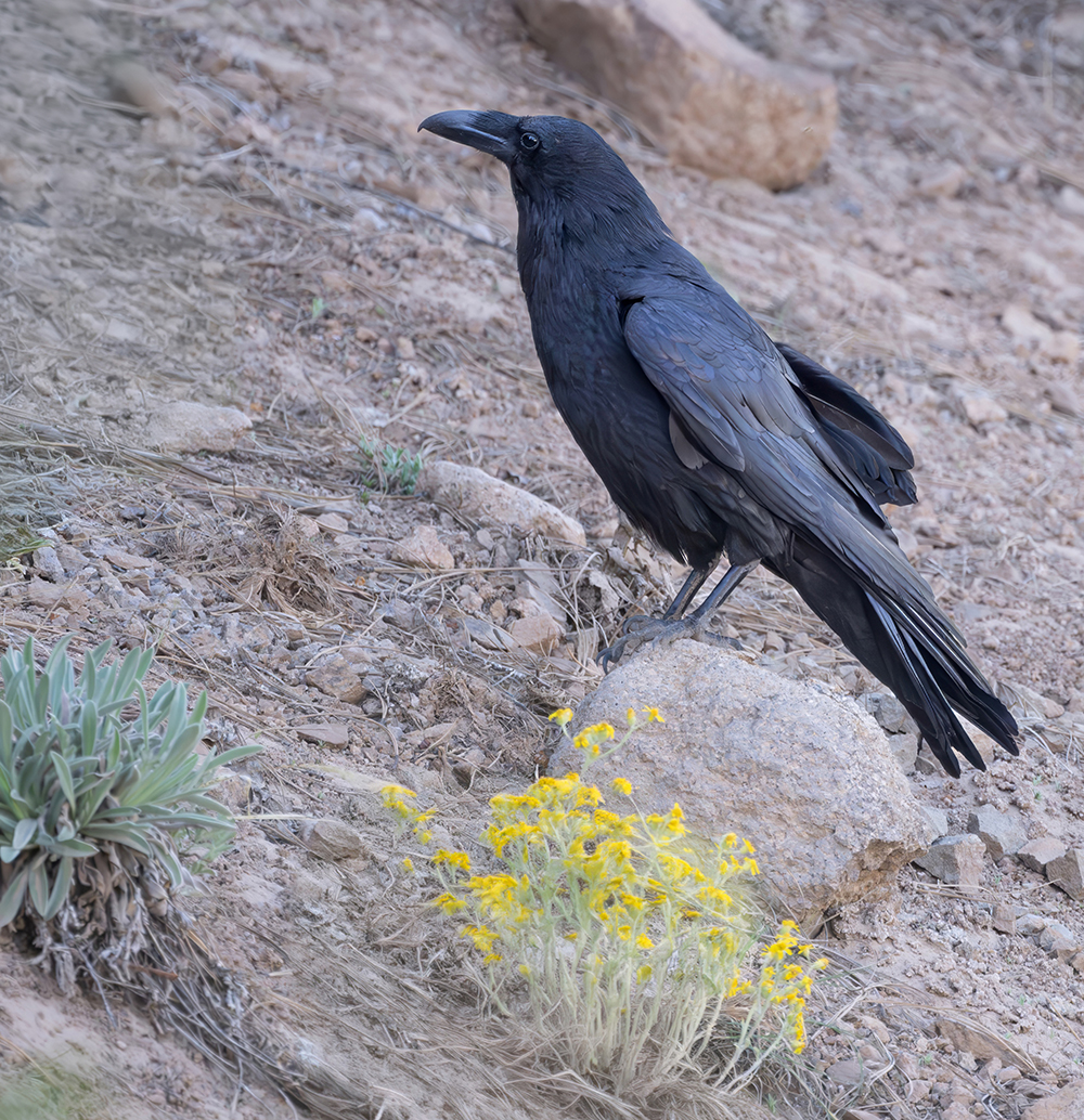In Arizona, Common Ravens are both resident and abundant, often associated with human activity where food sources are plentiful. They scavenge in urban areas, campgrounds, and along highways, but also play an important ecological role in natural systems by cleaning up carrion. Their presence is especially notable in the canyonlands of northern Arizona, where their dark silhouettes against the red rock cliffs and vast skies are a familiar sight.