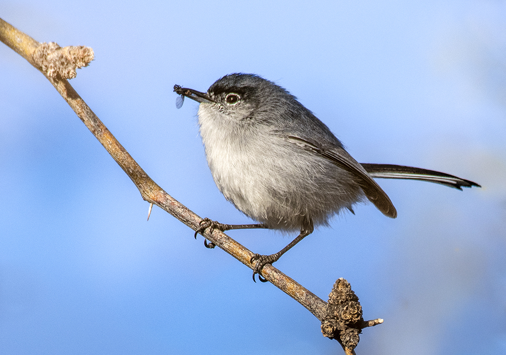 Blue-gray Gnatcatchers are most common in central and southern Arizona, including the Sonoran Desert, Mogollon Rim, and Sky Island mountain ranges. They are largely migratory in the state, with most individuals departing in fall for wintering grounds in Mexico and the southwestern United States, although some remain in southern Arizona riparian areas. Their high-pitched, buzzy calls and restless foraging behavior make them easy to detect despite their small size.