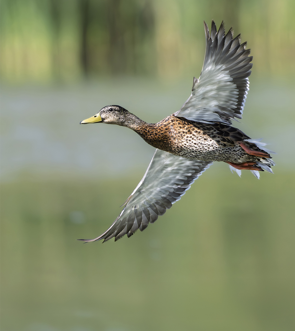 Mallards are Arizona’s most familiar dabbling duck, occurring statewide wherever open water is present. In winter—roughly October through March—the species is especially abundant, with migrants from northern breeding grounds joining resident birds to form large flocks on reservoirs, irrigation canals, and riparian marshes. Breeding pairs nest from late February through May, selecting sites near emergent vegetation along ponds, lakes, and slow‐moving rivers; successful clutches average 8–12 eggs. Mallards forage by tipping forward in shallow water to graze on aquatic plants, seeds, and small invertebrates, but they will also graze on terrestrial grains and forage scraps in agricultural fields. Urban and suburban ponds often host year-round populations, including feral or released domestic Mallards that interbreed with wild stocks.