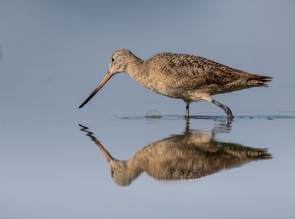 Marbled Godwits are among the largest of North America’s shorebirds, measuring 12–15 inches in length with a wingspan of roughly 23–27 inches and sporting a long, slightly upturned bill about 4–4.7 inches from base to tip. In Arizona, they are primarily passage migrants, most often seen during spring (April–May) and fall (August–October) at mudflats, saline lakes and river margins—places like the ponds around Yuma and the Salt River reservoirs. Their plumage is a warm cinnamon-buff below and mottled brown above; in flight, their underwings flash a bright orange-rust. These godwits probe soft mud for worms, crustaceans and insect larvae, and although rare in winter, small numbers may linger on open mudflats if conditions remain unfrozen.
