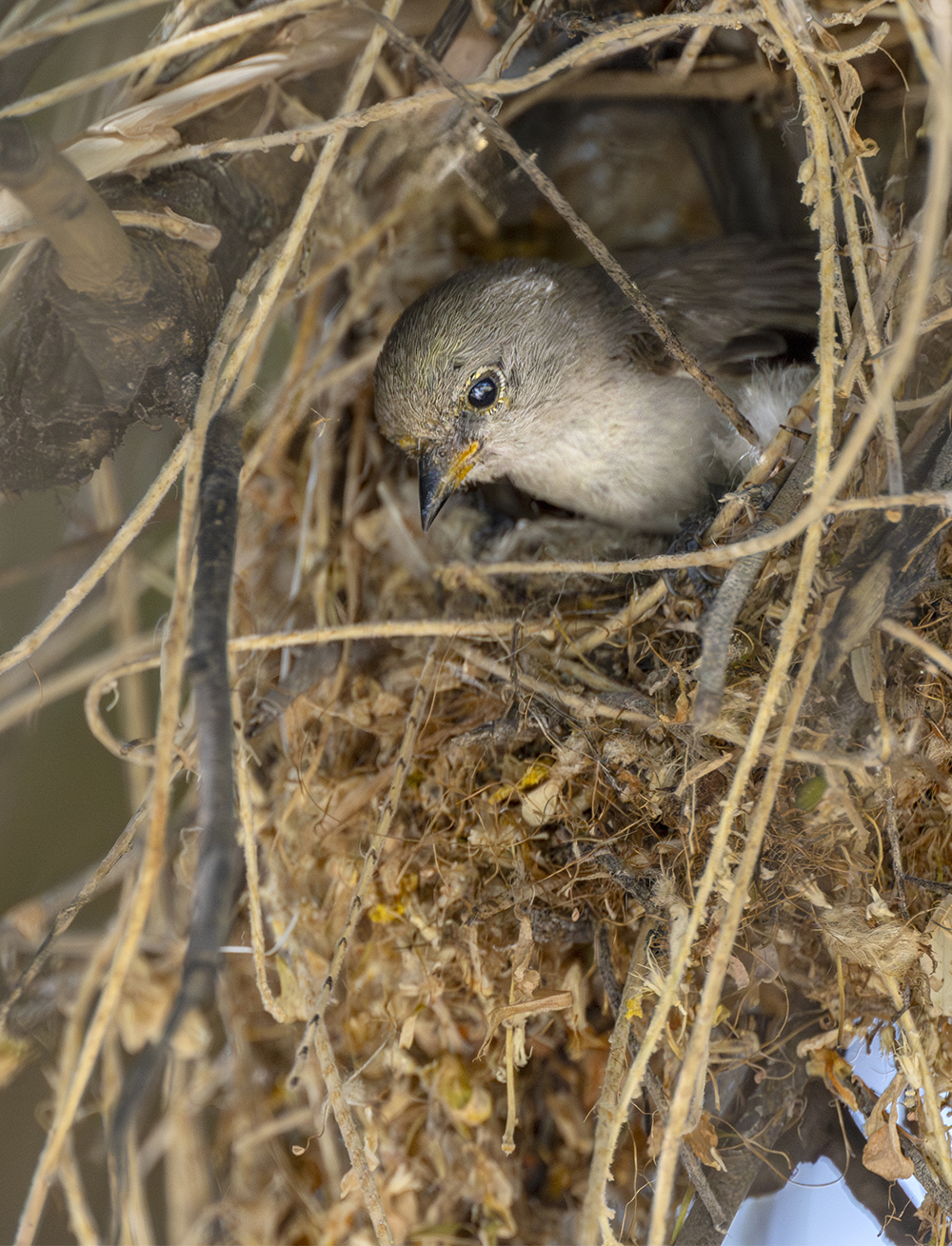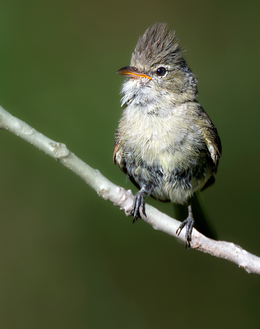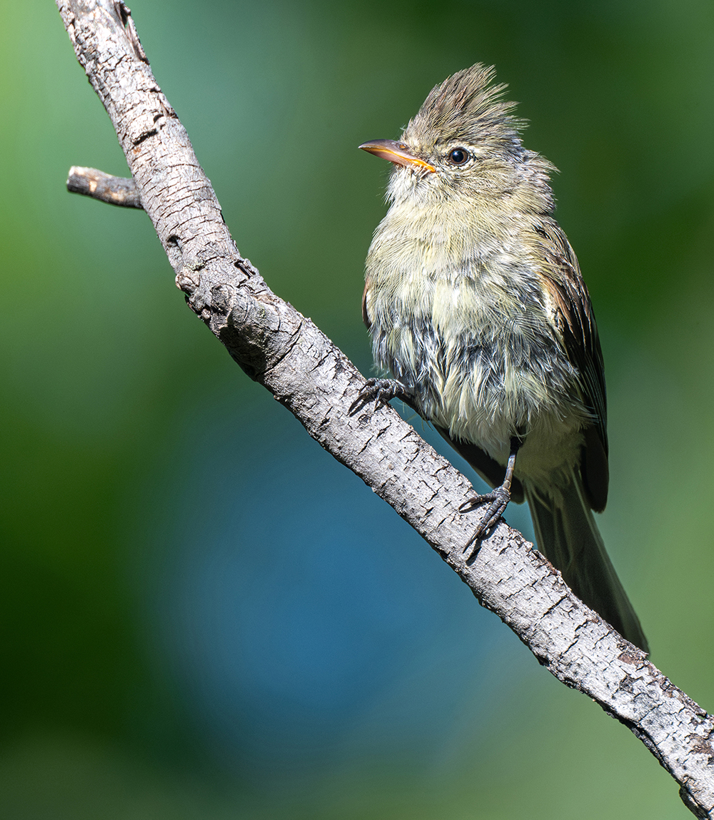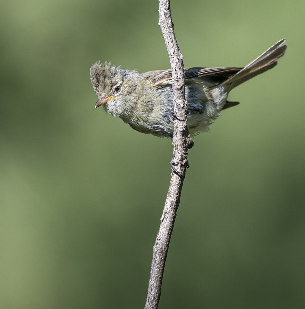 The Northern Beardless-Tyrannulet is one of Arizona’s smallest flycatchers and a distinctive resident of the state’s southern borderlands. Measuring only about 4 inches (10 cm) in length, this diminutive bird is characterized by its short, rounded wings, relatively long tail, and a plain grayish-olive body with a faint eyering. Unlike many flycatchers, Camptostoma imberbe has a very small, barely noticeable bill, which contributes to its “beardless” name.
