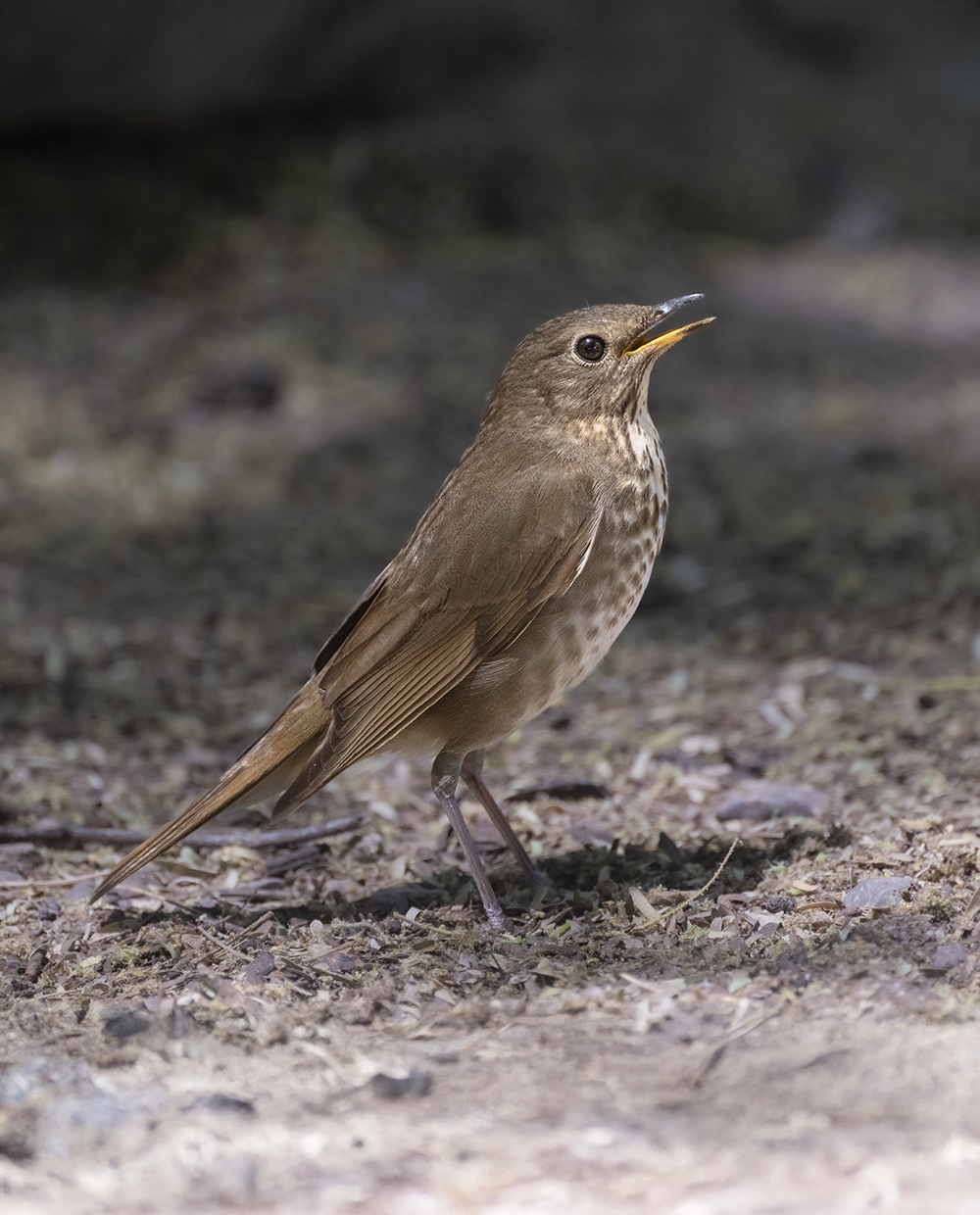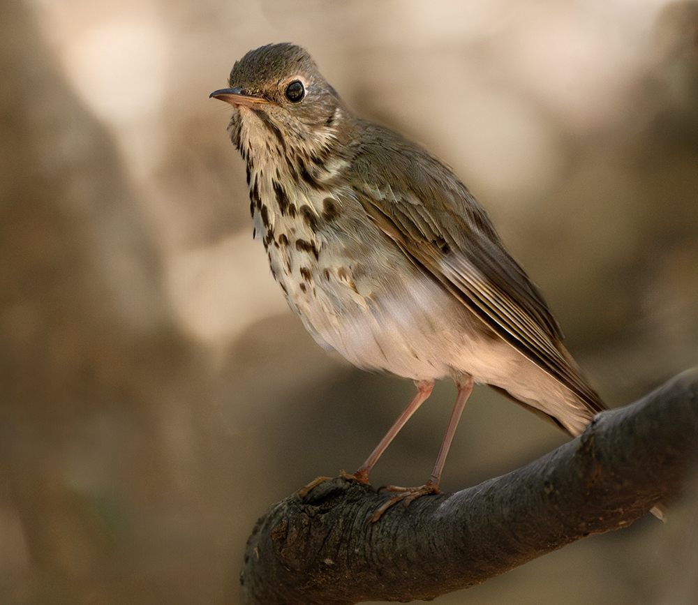 This thrush is recognized by its buffy eye-ring, spotted breast, and overall warm brown plumage. It measures about 6.3–7.5 inches (16–19 cm) in length with a wingspan of 11–13 inches (28–33 cm), and weighs between 0.8–1.5 ounces (23–42 g). In Arizona, birders frequently encounter it in mid- to high-elevation habitats during migration, particularly in the “Sky Island” mountain ranges of the southeastern part of the state. Though less common in desert lowlands, Swainson’s Thrush occasionally appears in urban parks and gardens with sufficient vegetation.