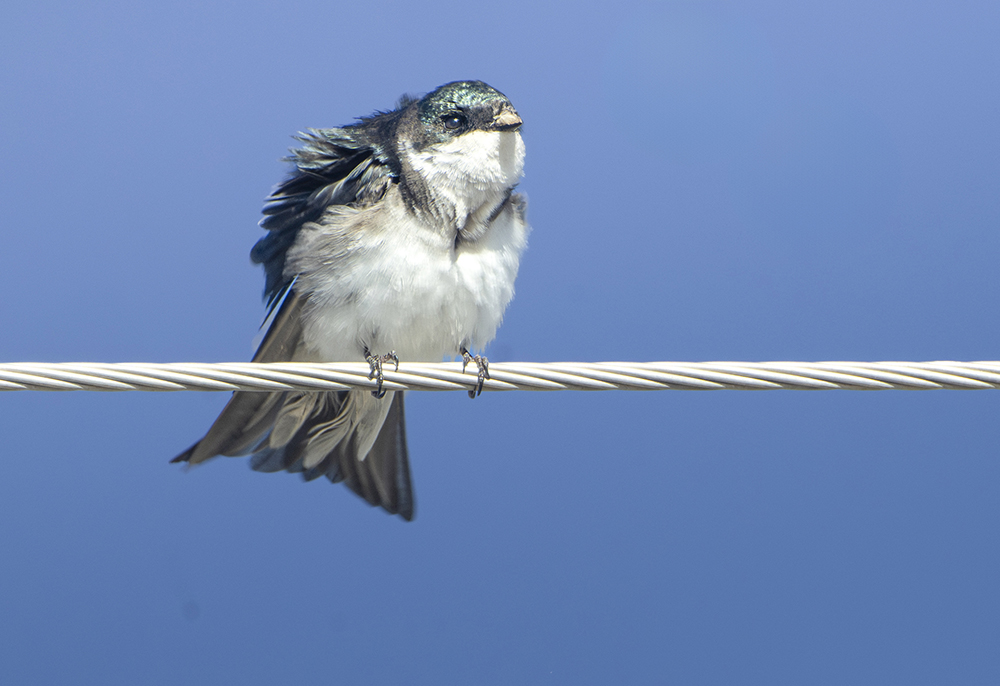 Tree Swallows are occasional but regular migrants and breeders in Arizona, especially in the northern and higher-elevation parts of the state. These small, iridescent blue-green swallows with clean white underparts are among the earliest swallows to arrive in spring migration, often appearing in March as they move northward. They are most commonly seen around lakes, ponds, rivers, and marshes where flying insects are abundant. In Arizona, they can be observed in places such as Lake Mary near Flagstaff, the San Rafael Grasslands, and other wetland habitats where suitable nest cavities are available.