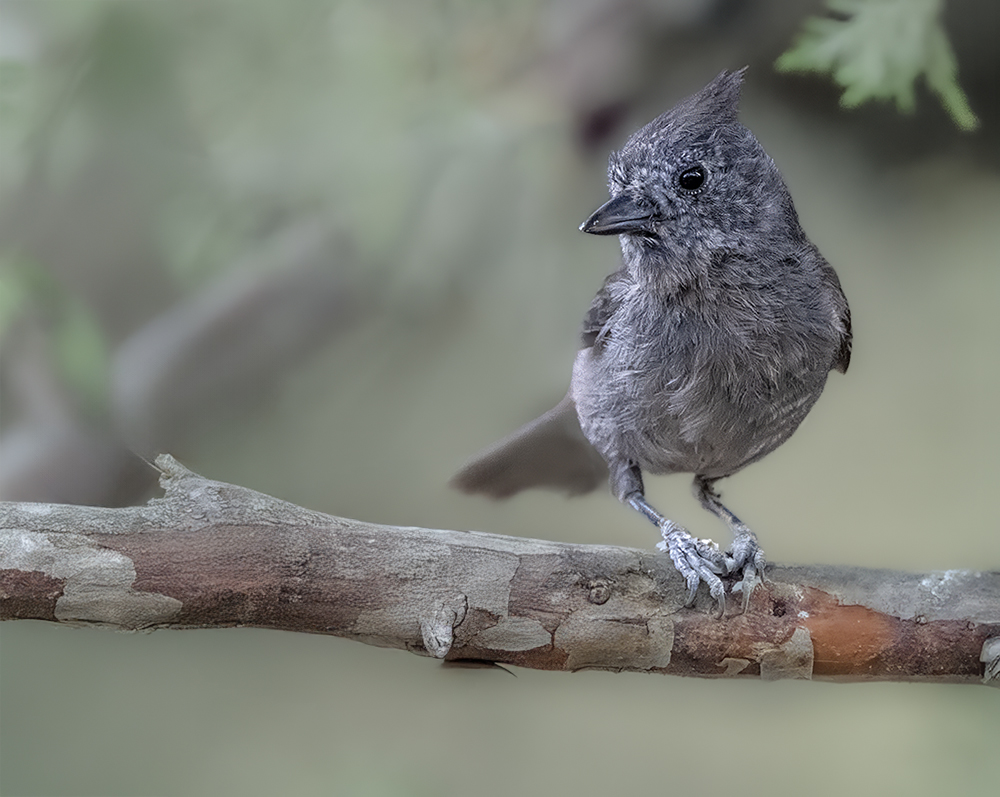 The Juniper Titmouse is a small, crested songbird found in the woodlands of central and northern Arizona. Closely tied to its namesake habitat, it is most often encountered in pinyon–juniper and oak–juniper woodlands, where it forages actively among branches for insects, seeds, and berries. This species is non-migratory and remains in Arizona year-round, nesting in cavities in trees or old woodpecker holes.