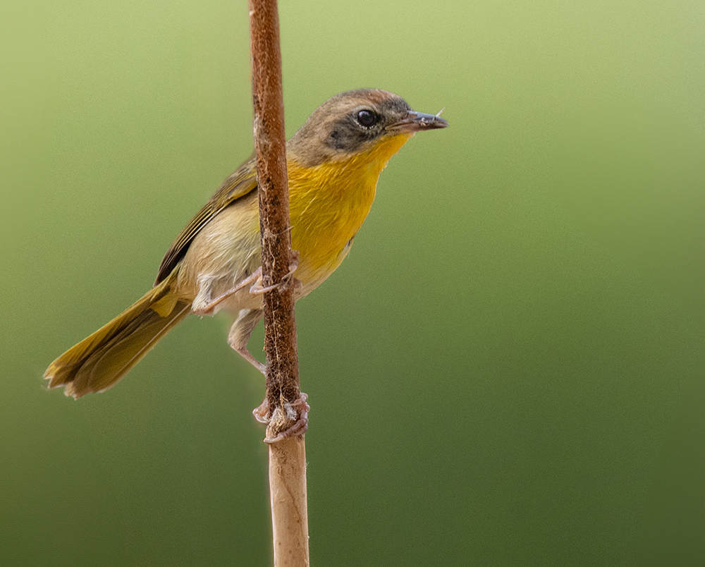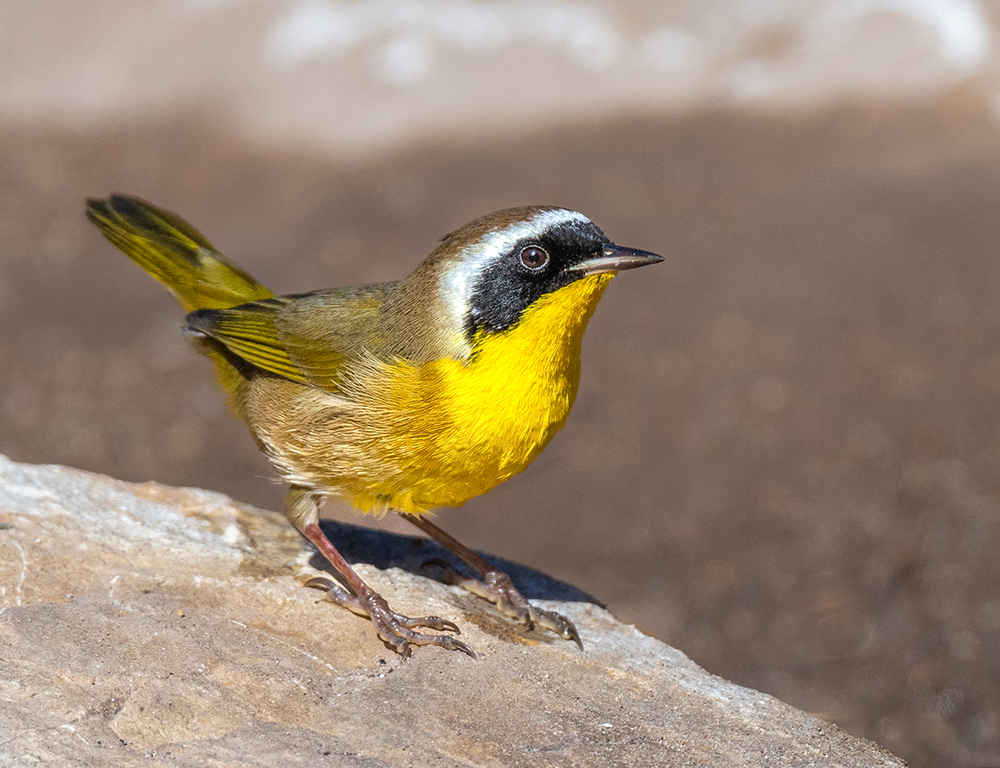 The Common Yellowthroat is widespread in wetlands, ponds, and marshy meadows across Arizona. The male’s black mask and bright yellow throat make it unmistakable. Females are olive above and yellow below. Yellowthroats skulk in dense cattails, often heard before they’re seen, giving their “witchity-witchity” call. They breed in lowland wetlands throughout the state and migrate south in fall, though some remain year-round in warmer areas.