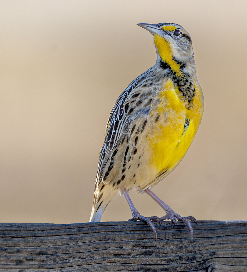 The Western Meadowlark is a familiar grassland bird found across Arizona’s open fields, prairies, agricultural lands, and desert valleys. Known for its bright yellow underparts with a bold black “V” on the chest, streaked brown upperparts, and melodious flute-like song, the species is a symbol of western North America’s open landscapes. It is slightly smaller than its close relative, the Eastern Meadowlark (Sturnella magna), and can be distinguished by its richer, more complex song and subtle plumage differences.
